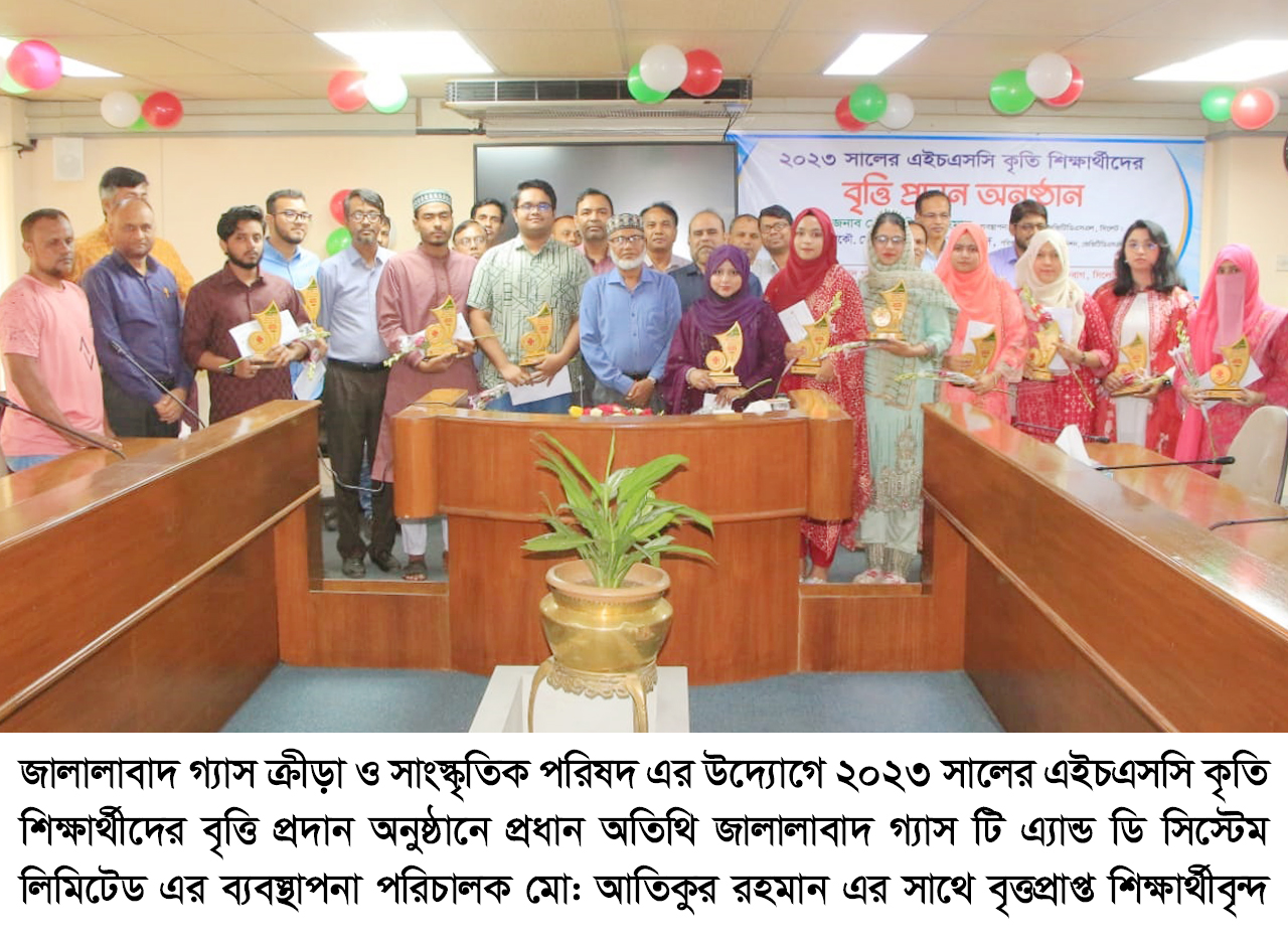 বুধবার (১৬ জুলাই) সকাল ১১টায় সিলেট নগরীর মেন্দিবাগ জালালাবাদ গ্যাস টি এ্যান্ড ডি সিস্টেম লিমিটেড এর গ্যাস ভবনের কনফারেন্স রুমে জালালাবাদ গ্যাস ক্রীড়া ও সাংস্কৃতিক পরিষদ এর উদ্যোগে ২০২৩ সালের এইচএসসি কৃতি শিক্ষার্থীদের বৃত্তি প্রদান অনুষ্ঠানে প্রধান অতিথির বক্তব্যে তিনি উপরোক্ত কথাগুলো বলেন।