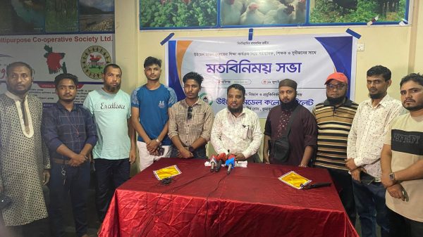 সিলেটের উইমেন্স মডেল কলেজের শিক্ষা কার্যক্রম নিয়ে জকিগঞ্জে অবস্থানরত সাংবাদিক,শিক্ষক ও সুধীজনের সাথে শনিবার (১৯ জুলাই) বিকাল ৫:৩০ মিনিটের সময় জকিগঞ্জ বাজারের সোনার বাংলা কনফারেন্স হলে এক মতবিবিনিয় সভা অনুষ্ঠিত
